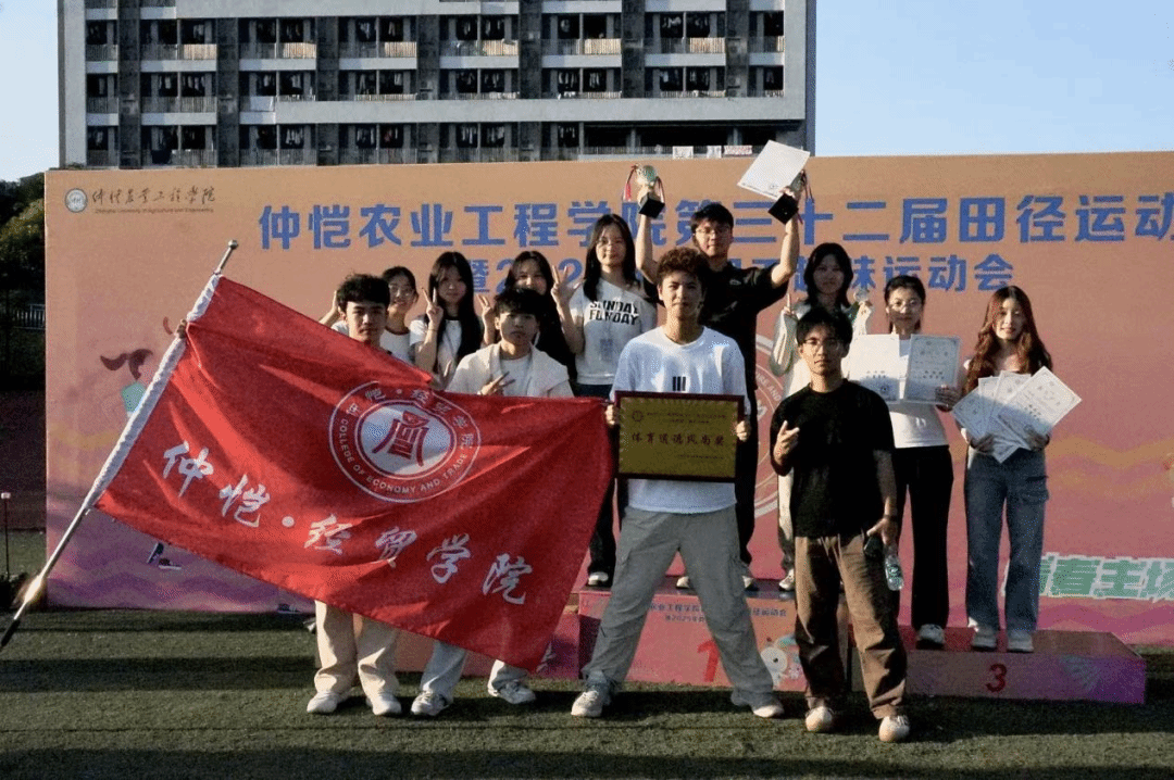在经贸学院师生的凝心聚力下,我院最终斩获教职工田径赛团体第六名,校运会团体总分第七名,并荣膺“体育道德风尚奖”。校运会圆满落幕之际,经贸师生齐聚赛场,携手合影留念,将拼搏后的荣耀与喜悦定格为永恒瞬间。