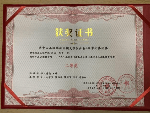 我院会展经济与管理专业2023级“消灭一队是一对”(指导老师:关晶、王婧)及2024级“花园宝宝队”(指导老师:何瀚林)两支队伍凭借出色表现,分别于“会展+AI赛道”与“实训技能赛道”中双双斩获全国二等奖,两支队伍同时荣获组委会颁发的教学成果奖二等奖。