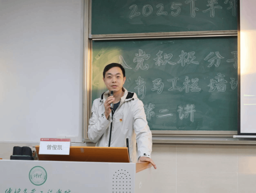 为全面贯彻落实习近平总书记关于青年工作的重要思想,持续推进青年大学生思想政治教育工作的深化,着力培养一批政治信仰笃定、实践本领卓越、综合素养全面、工作作风扎实的青年骨干力量,11月26日,经贸学院在经管楼312室举办了2025年下半年入党积极分子暨“青马工程”培训第二讲,经贸学院党委委员、专职组织员曾俊凯为大家授课。