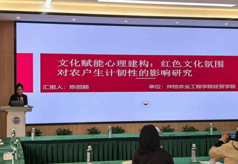 在分论坛交流环节,由李争教授与陈丽颖同学合作的论文《文化赋能心理建构:红色文化氛围对农户生计韧性的影响研究》,荣获会议征文二等奖,陈丽颖同学以该论文为题进行汇报。报告基于实地调研和数据分析,聚焦于红色文化氛围在农户生计韧性构建中所起的作用,探讨了红色文化如何通过文化赋能来影响农户的心理建构,进而增强其生计韧性。这一研究不仅拓宽农户生计渠道,也为生计韧性的解读提供了实践指导。