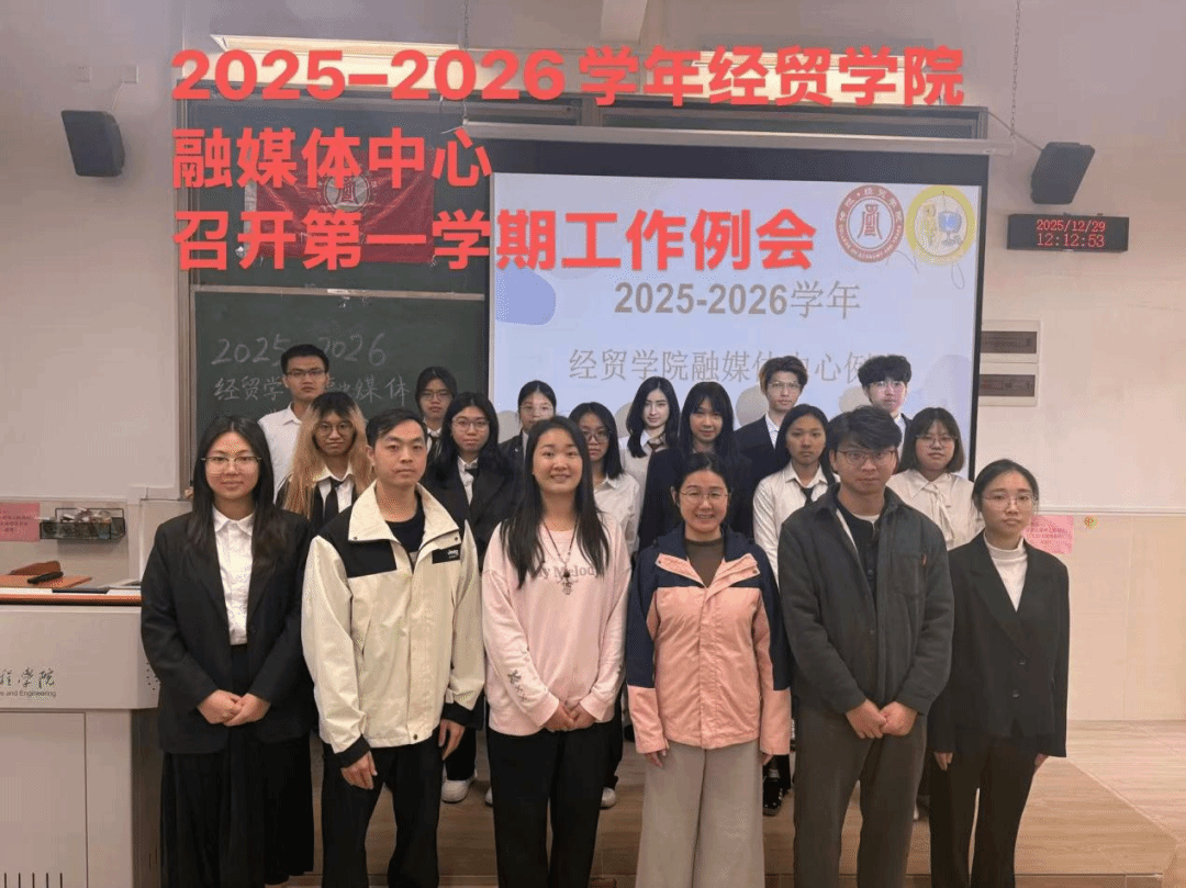 为全面复盘本学期工作成效,明确后续发展方向,12月29日,经贸学院融媒体中心于经管楼312教室顺利召开2025-2026学年第一学期期末例会。融媒体中心指导老师刘姝利、辅导员徐杨龙、付志欢、曾俊凯以及融媒体中心全体成员参加会议。