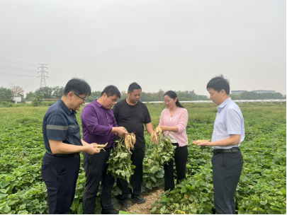 2026年4月7日,经贸学院陈新华老师及省级科技特派员郭建军、徐应祥、周映萍等一行前往广东象郡农业科技有限公司甘薯育苗基地,实地考察新型高产甘薯育苗及水东芥种植情况。该企业在茂名当地撂荒地上持续开展品种研发,目前已培育出三十余种甘薯新品种,其中包括亩产可达七千斤的高产红薯。企业立足本土土壤与气候条件,通过品种改良和适应性种植,让长期闲置的撂荒地重新焕发农业生产能力,形成了“以薯治荒”的特色路径。