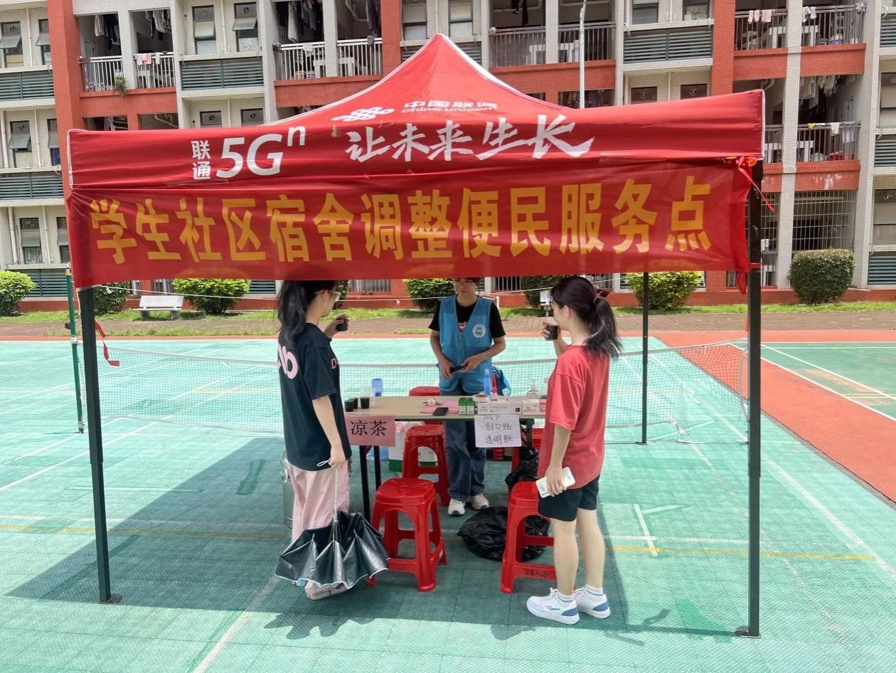 在开始宿舍搬迁工作前,学院对此次工作高度重视,精心部署,根据学生实际需求制定详细的搬迁方案。学院联系搬家车辆对接并在各栋搬迁宿舍楼下设立了志愿者服务点。同时学生社区设立便民服务点,为志愿者们提供了纸巾、创口贴、藿香正气水和凉茶等物资。同学们提前将行李打包并进行标记,以宿舍为单位有序进行行李清点、搬运、装车、卸车等工作。