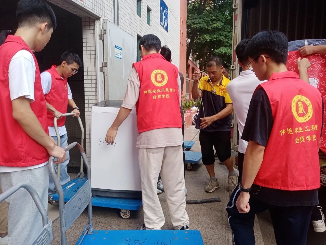 炎炎烈日下,志愿者们齐心协力将行李搬到对应宿舍,来返往复,高效而有序。汗水渗透了志愿者们的衣裳,但炽热的阳光无法阻挡志愿者们前进的脚步,沉重的行李压不倒志愿者们为同学服务的热情。