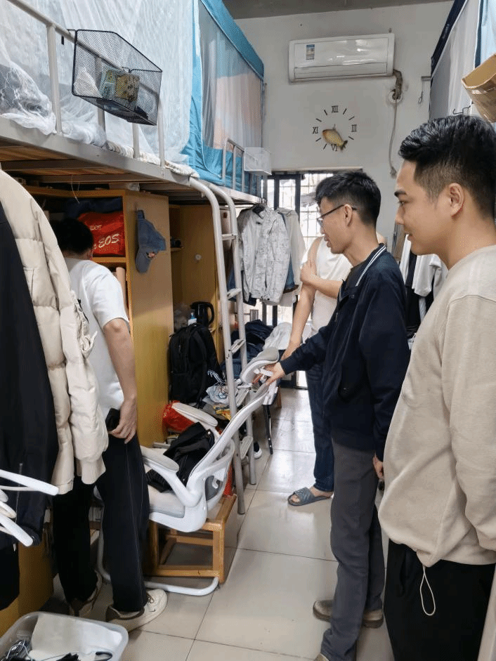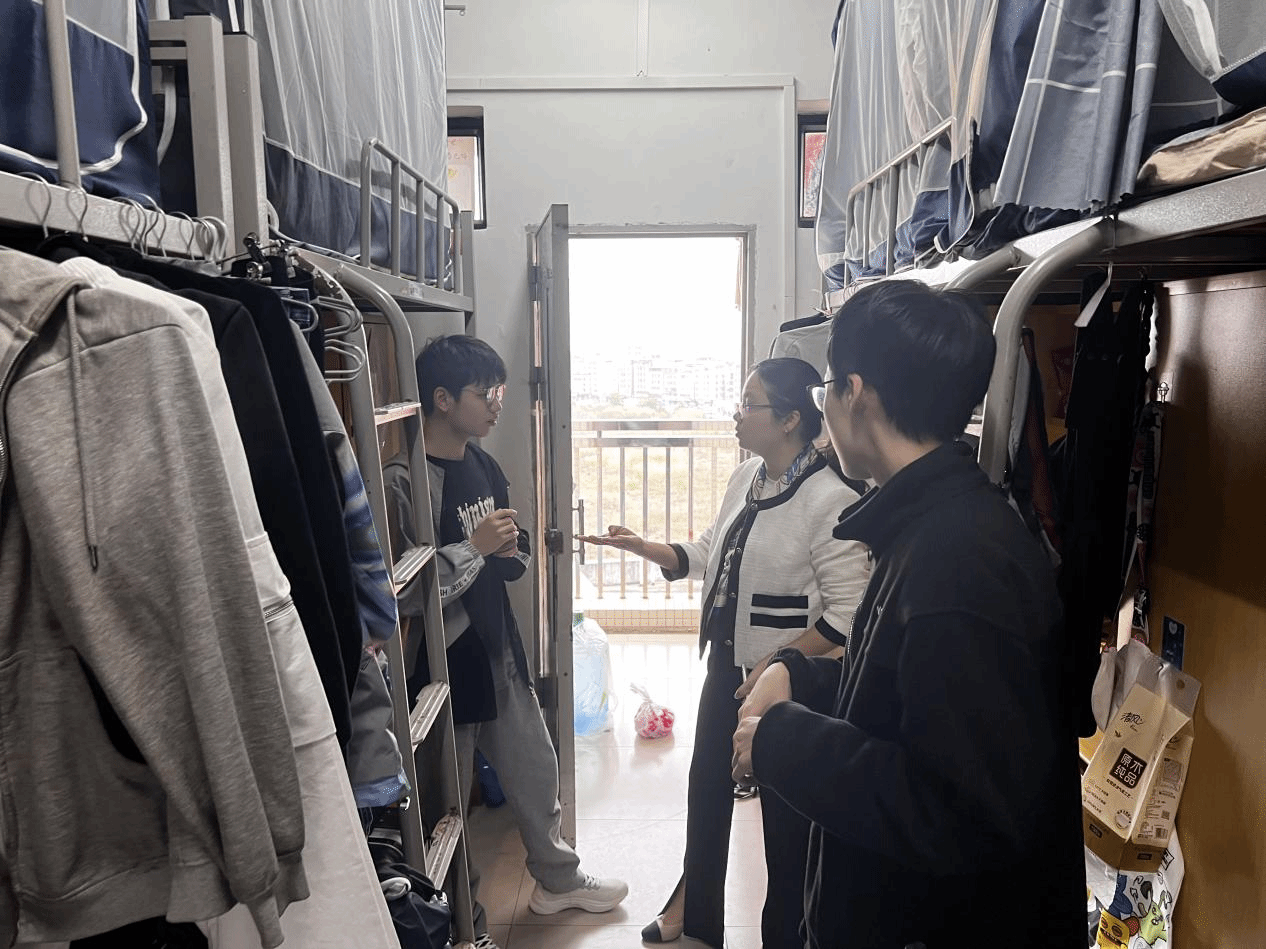 走访过程中,学院领导与同学们开展亲切的交流,细致了解了同学们的学业进展、生活适应情况、假期实践经历及新学期规划,耐心解答了同学们提出的问题,并叮嘱同学们要合理安排学习时间,夯实专业基础,积极参与学术创新与校园文化活动,不断提升自身综合素质。与此同时,辅导员们逐间检查了宿舍卫生状况及用电设备规范使用情况。他们结合真实案例特别强调同学们要增强安全防范意识,严格遵守宿舍管理规定,注意防火防盗,警惕刷单返利、虚假购物等电信诈骗手段,妥善保管好个人财物及身份信息。此外,还要求同学们保持宿舍整洁,共同营造良好的学习和生活环境。