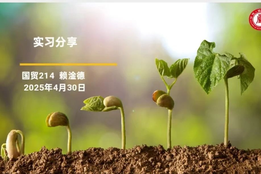 第二个给大家分享的是国贸214班的赖淦德,他给同学们分享了自己实习工作期间的感受。他认为实习前要锚定目标,在开始实习前要多搜寻实习公司的信息与业务。接着他向大家分享“四象限法则”来选择适合自己的企业,要放心大胆地去试错,在错误中成长。随后他给大家介绍了自己的职场工作法则,核心要点是要提升自己的三个能力:一是表达力,提升自己的书面和表达能力,实现精准信息传递;二是执行力,要构建“谋划-请示-记录-落实-反馈-总结”的闭环工作流;三是协作力,培养跨层级协作能力与补位意识,建立良性沟通心态。最后他勉励大家要不忘初心,砥砺前行;向下扎根,向上生长。